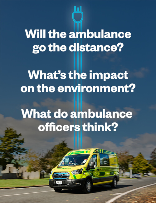As part of this commitment, we’re trialling Australasia’s first electric emergency ambulance to see if an EV ambulance could be a viable solution to help reduce our emissions and integrate sustainable practices into the care we provide.